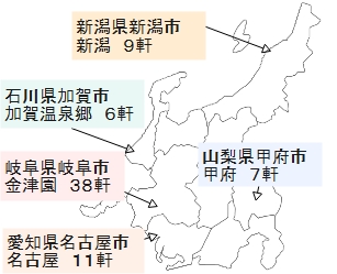 山梨県の県庁所在地甲府に7軒のソープランド街があります。