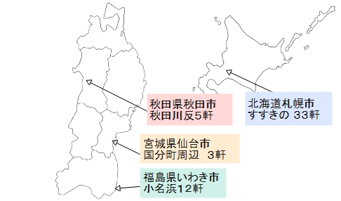 北海道には札幌市内のすすきのに33軒、小樽、旭川、函館、釧路に1軒ずつ営業しています。
